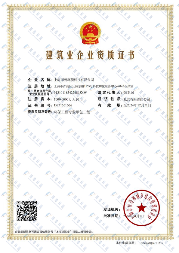 《中國(guó)環(huán)境服務(wù)認(rèn)證證書(shū)【環(huán)保管家一級(jí)】》